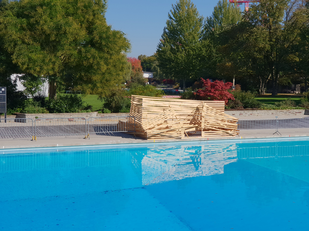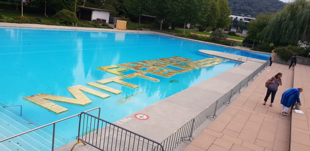 Eine faszinierende Skulpturen und Installations-Sammlung im Max Frischbad. Max Frisch hat dieses Schwimmbad 1949 eröffnet. Deswegen ist es sicher prädestiniert für Kunst-Ausstellungen. Angeregt durch das überdimensionale Badetuch von Eveline Cantieni, bei welchem ich mit ca. 30 Leute zusammen mitgeholfen habe bei der Entstehung, machte es mir riesig Spass, all die Werke im Schwimmbad anzuschauen. Alle nahmen Bezug zum Thema Schwimmbad oder zu Max Frisch. Nächstes Jahr wird das 70jährige Entstehung des Schwimmbads gefeiert. Beachtet auch den interessanten Link der NZZ von 1943.