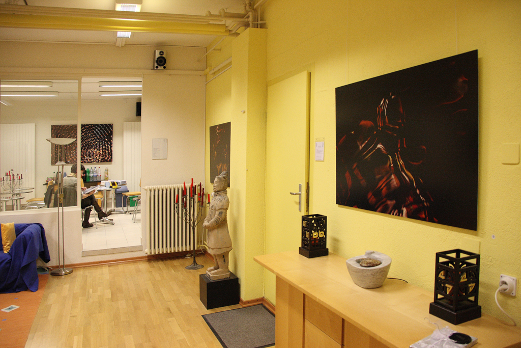 Verfolgt man die Künstlerin auf ihrem Werdegang, so beschäftigte sie sich früher (in den späten 90er Jahren) vor allem in abstrakter Malerei mit Formuntersuchungen und mit Farbauseinandersetzungen; und als Gegensatz dazu mit Materialbildern (den sogenannten "Raumszenen" im grossen Ausstellungsraum), so hat sie sich mittlerweile eine neue Perspektive eröffnet, indem sie sich mit Fotografie und deren Verarbeitung zu packenden und geheimnisvollen Bildlandschaften beschäftigt.